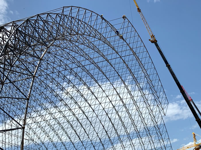 (2)网架加工前应对现场尺寸进行复测,确认无误后方可进行加工、安装;网架制作、运输、安装应遵守《空间网格结构技术规程》JGJ7-2010、《钢网架辛集螺栓球节点》JG/T 10-2009、《钢网架辛集螺栓球节点用高强度螺栓》 GB/T 16939-2016、《辛集钢结构辛集工程辛集施工规范》 GB50755-2012、《辛集钢结构辛集工程辛集施工质量验收标准》 GB50205-2020。